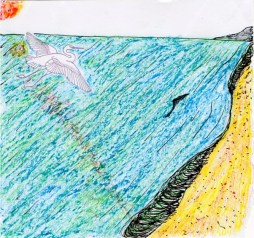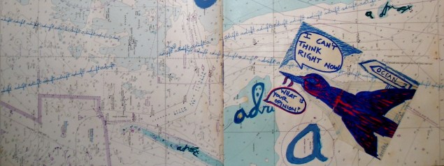 this is a detail from dereliction – my son Ocean was 2, as indicated by the signage, and the bird carrying a worm represented my view of fatherhood