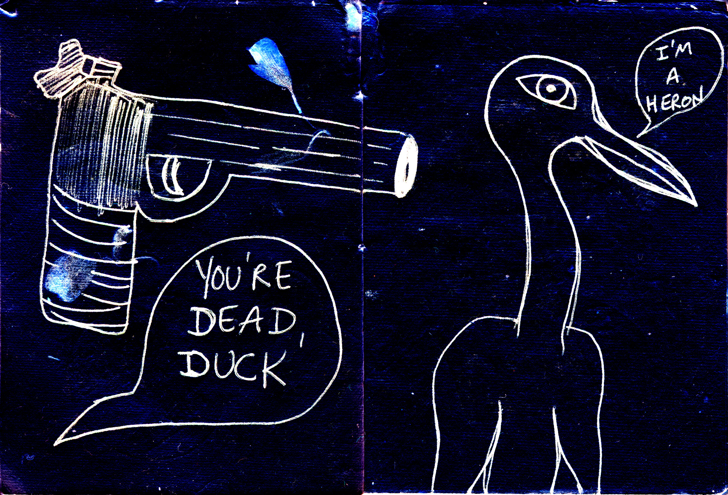 another in the series of taking a drop of spilled something and turning it into something else (i.e. rehearsal [2009], above and dog-cat pushmi-pullyu [2008], below)
